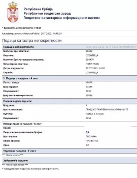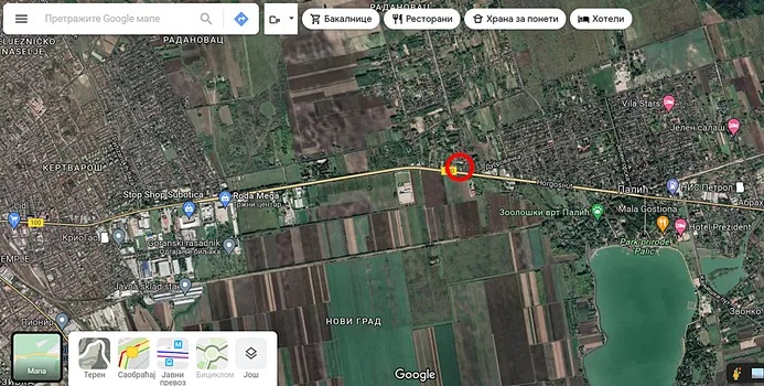 Građevinski plac, glavni put E-5 Subotica-Palić, površine 1050 m2. Ulica: Mira br 47, ulični front 30m x 35m. Dozvoljena gradnja, stanbenog objekta, poslovno stanbenog objekta ili poslovnog objekta. Koeficijent zauzetosti parcele 40%. Koeficijent izgradnje 1, znači maksimalna kvadratura budućeg objekta 1050 m2. Prizemlje+prvi sprat+potkrovlje (i suteren). Br parcele: 17496, K.O. Novi grad. Vlasnik 1/1. Ispred placa nalazi se sva infrastruktura, a na placu bušeni bunar. Cena je fiksna 125.000 eura. Tel 0600488804