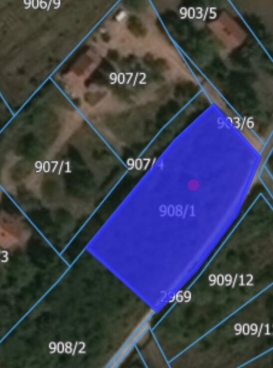 Plac na Trešnji 12.5 ari vlasnik 1/1 gradjevinsko zemljiste od autokomande 30km na mirnom mestu okolo ima kuca bandera na 3m od placa put tucanik 500e po aru katastarska parcela 908/1.0641222094