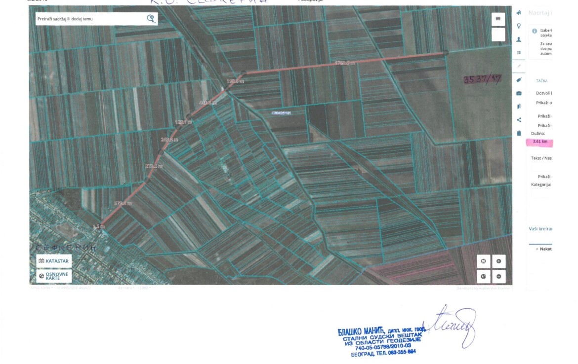 Sefkerin, bašta, 58 ari, prvoklasna zemlja. 3 km od oboda sela. Parcela 3537/17.